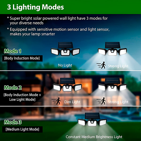 SENSBEAM omogućuje jednostavnu instalaciju zahvaljujući tri podesiva dijela lampe koji pružaju snažno vanjsko osvjetljenje točno tamo gdje vam je potrebno. Podesiva trodijelna rasvjeta visokog intenziteta napaja se solarnom energijom, bez potrebe za kablovima ili baterijama. Lampa se lako postavlja bez posebnih alata ili dodatne pomoći. Tri podesiva kraka mogu se usmjeriti prema potrebi, što je čini idealnom za ulazna vrata, dvorišta, balkone, garaže i ostala ključna područja.